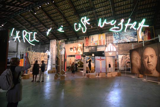 « E la mia Biennale » a t-il commencé à vociférer lors de la présentation de celle-ci en conférence de presse, à un journaliste curieux qui lui demandait les raisons de ses choix pour le moins surprenants. En fait, M. Sgarbi s’est contenté de réunir un comité « expert » d’intellectuels par lui choisis, chargés de lui proposer un panel d’artistes « intéressants » et significatifs de la « réalité artistique italienne ». Le résultat est un capharnaüm déroutant et désolant, un empilement d’oeuvres nullissimes jusqu’au plafond, avec un accrochage qui se la joue « Salon des refusés » du XIXe siècle.