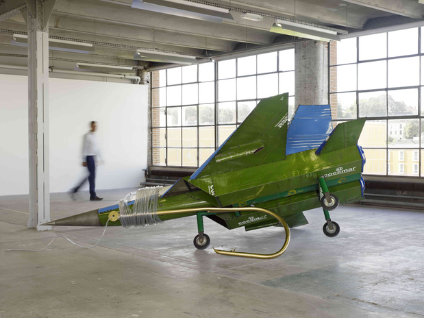Mircea Cantor, Fishing Fly, 2011 Barils de pétrole, acier, inox, altuglass, pvc — 202 × 405 × 340 cm Coproduction Yvon Lambert / le Crédac Courtesy Mircea Cantor et Yvon Lambert, Paris — © André Morin / le Crédac