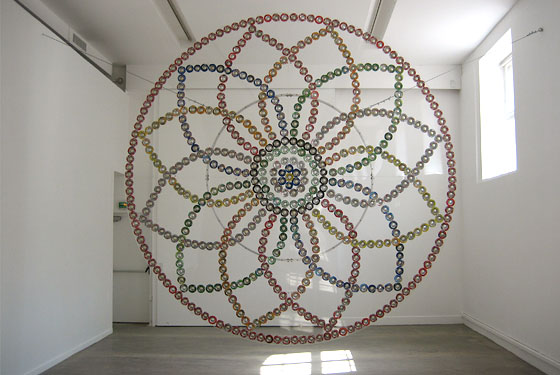 Mircea Cantor fait de manière récurrente appel à la récupération d’objets triviaux et s’inspire de techniques devenues traditionnelles et populaires en Asie et en Afrique. En 2007, il réalise Rosace, une sculpture reprenant la forme décorative médiévale d’une rosace, évidée et suspendue dans l’espace. La rosace est formée d’une multitude de petites rosaces réalisées à partir de cannettes recyclées. La technique de fabrication de jouets à partir d’objets de consommation courante récupérés est ici réappropriée par l’artiste qui traite des effets, positifs comme négatifs, de la mondialisation. Positif car elle favorise l’interculturalité, négatif puisque simultanément elle broie les spécificités, les différences.