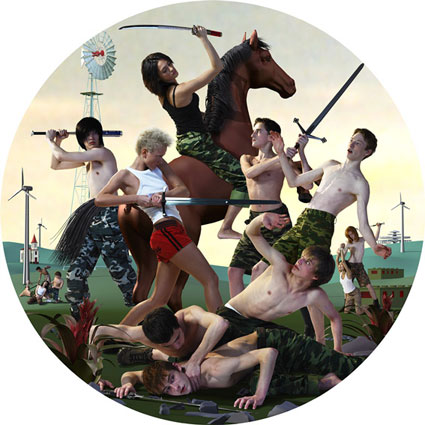 Dans ce cas là c’est Duetto présenté en 1989 par les illustres chorégraphes de Parco Battefrly (Virgilio Sieni et Alessandro Certini), repris aujourd’hui par les danseurs de Fattoria Vittadini. Une danse de comparaison, de chasse, de combat, qui est pure, et belle, mais qui demeure dans son jus, désuette, dans sa version 2011.