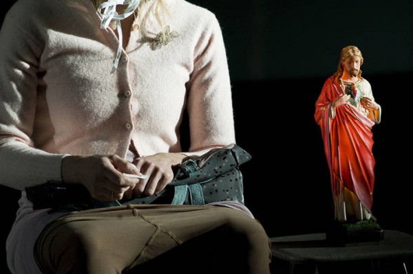 Ce voyage avance encore et encore, jusqu’à la solitude et au silence, avec cette image emblématique d’une femme alcoolique, vieillie, assise sur un chiotte, comme dans une église en vénérant un santon. La dramaturgie suit la vie de la protagoniste pendant cinq phases, cinq étapes chronologiques, pleines de toutes sortes d’émotions.