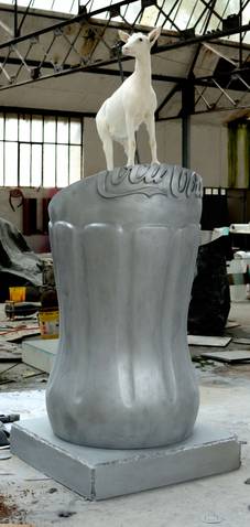 Les photographies font écho aux sculptures, puisqu’elles viennent témoigner d’une œuvre installée sur l’île de l’artiste, Black Coke Down (2010), une bouteille de Coca-Cola® noire, couchée sur le sol, partiellement enfouie dans les feuilles tombées, comme un résidu d’une époque. Aux ruines contemporaines s’ajoutent les trois Egyptian Boxes, trois boîtes ouvertes, dotées d’un intérieur blanc (white-Cube) et d’un extérieur d’apparence terreuse. Dans ces white-cube miniatures se jouent de véritables duels esthétiques : un arbre en plastique servant à la décoration des aquariums sur lequel est pendue une vache coupée en deux, Maurizio Cattelan vs Damien Hirst ; un canon projetant du rouge à lèvre contre un cheval fixé sur la paroi, Anish Kapoor vs Maurizio Cattelan ; un requin Playmobil® prêt à attaquer un groupe de Cicciolina, Damien Hirst vs Jeff Koons. Chaque œuvre est symbolisée par un jouet spécialement acheté ou bien appartenant à l’enfance de l’artiste. Le fictionnel rejoint l’authenticité, et vice versa. Au sein de ces boites qui font référence aux maquettes égyptiennes emportées par les rois et reines dans leurs tombeaux, les stars de l’art contemporain s’affrontent. Un archéologue du futur y trouvera un état des lieux critique de l’art du XXIème siècle.