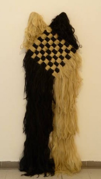 Une belle technique n’est rien sans une majesté qui la dépossède, sans une aura qui se détache des conditions de parade. Majesté du mouvement, calfeutrage des protocoles. Magali Delrieu met en évidence un savoir-aimer de la matière : le travail sur la tresse, sur le lacis, qu’elle opère rompt avec la féodalité des codes classiques de la couleur et du peigné telle que la définit Michel Pastoureau dans les ateliers de passementerie dans les cours d’amour du XIVé siècle : « nulle mise, coiffe ou blason qui n’ait son parent, qui n’ait eu vent de la guerre. » Le moindre bracelet de fer-blanc ou de vermeil conjure la déception mortifiée de combats menés dans les chambres d’amour ou les donjons intérieurs.