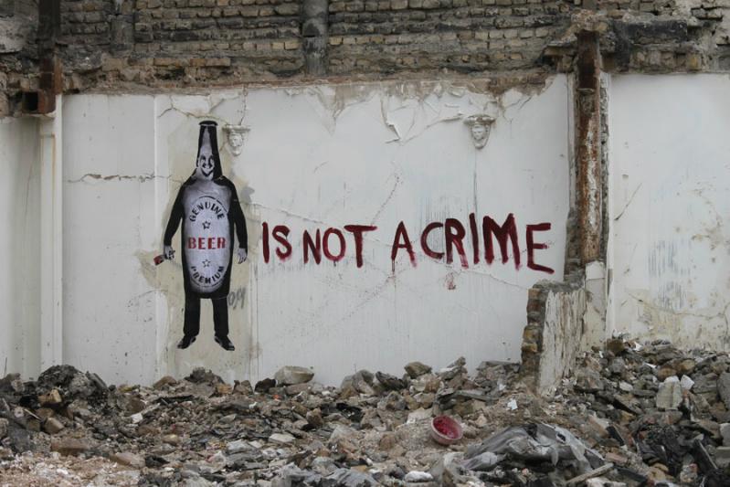 A l’instar des Bansky ou autres Dolk, les deux jeunes iraniens ont vite pigé la force des images de rue, dans un pays où celles-ci n’ont que peu d’endroits où s’exprimer librement. Leurs actions très réactives, comme celle visant un autre interdit du gouvernement qui considère que boire une bière en pleine rue est un crime, mettent à mal le discours étatique qui produit à l’envi une multitude d’interdictions et de leçons à propos de tout et de rien, une morale à l’iranienne qui fait long feu.