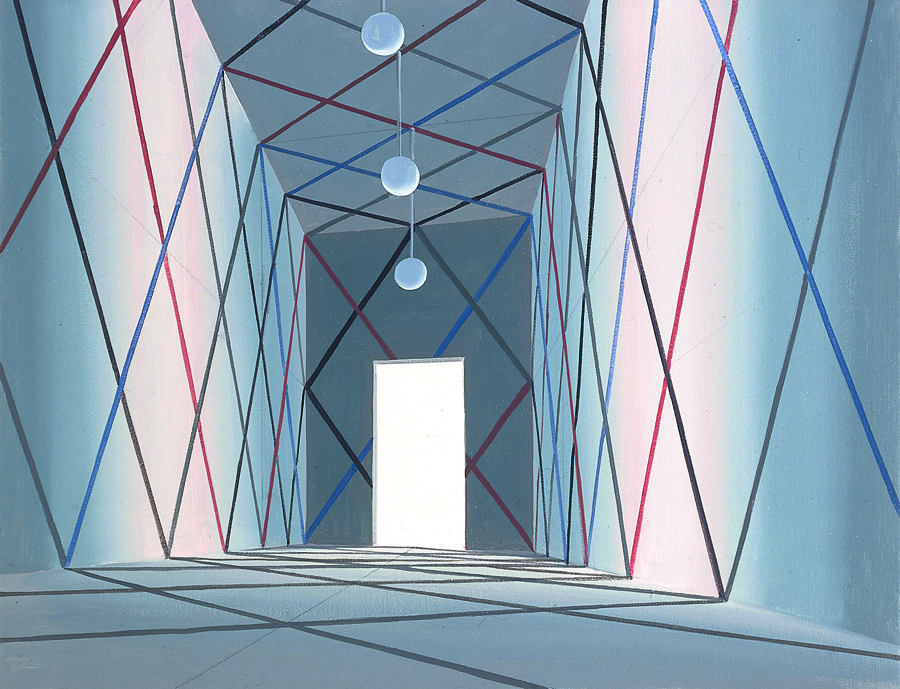 C’est dans ce contexte que Christian Bernard voit pour la première fois un tableau de Thomas Huber. Il s’agit de Discours sur le Déluge, une des première peinture réalisée par l’artiste en 1982 et qui le frappe par son style pictural inédit, sans épaisseur et sans matérialité, tout à fait étrange et à l’écart de la production de l’époque empreinte d’expression et dominée par des œuvres monumentales. Discours sur le Déluge peut être considéré comme le tableau fondateur qui contient l’essentiel de la pensée de l’artiste et qui reflète toute l’exposition. C’est l’œuvre sur laquelle commence le parcours, au 4e étage du musée.