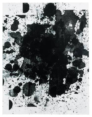 Aux peintures textuelles s’ajoute un intérêt particulier pour les tapisseries imprimées dont il conserve les motifs et les transfère au moyen de la sérigraphie sur les toiles vierges. Il utilise une trame abstraite, florale ou végétale issue du domaine industriel et commercial, afin de la retourner. L’ornemental est annulé grâce aux filtres techniques employés par l’artiste. Durant cette première période, il compose un répertoire formel qu’il va conserver par la suite. Un alphabet de signes et de techniques qu’il travaille et retravaille constamment : le graffiti, la gamme chromatique restreinte (blanc, noir, gris, marron, bleu et sienne), la tache, les passages au rouleau. La tache se fait de plus en plus présente dans son œuvre à la fin des années 1990. La sérialité des compositions tachées nous rappelle les tests de rorschach, pourtant la symétrie est absente et l’artiste affiche une grande liberté technique.