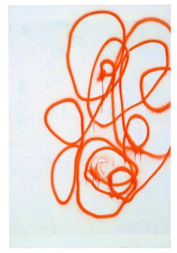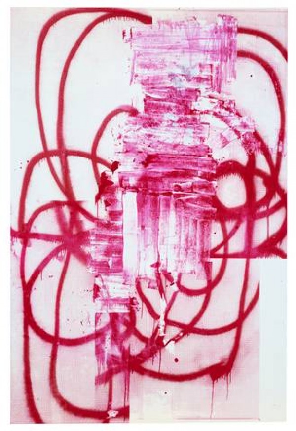 Les années 2000 sont marquées par des changements techniques et formels. L’exposition parisienne présente une trentaine de peintures grand formats, toutes produites entre 2000 et aujourd’hui, il s’agit donc d’une sélection d’œuvres récentes dont la plupart sont inédites. Elles traduisent un retour plus important à la couleur et le développement d’une anti-esthétique basée sur la destruction, la désintégration, de l’informe, de la disparition et de l’effacement. Avec une apparente économie de moyen, il accentue le processus multicouche grâce à une superposition des techniques pratiquement indécelable au stade final. Par exemple, il photographie ses dessins, les scanne et les travaille sur Photoshop. Ensuite il imprime l’image, la photocopie, l’agrandit plusieurs fois jusqu’à obtenir des signes pixélisés, indéchiffrables, inidentifiables. Il effectue des sérigraphies ou autres techniques de gravure pour transférer cette nouvelle image sur la toile ou le papier. Celle-ci est partiellement ou totalement recouverte par de larges passages de peinture au rouleau (Mark Rothko, Pierre Soulage), des taches ou des coulures (Jackson Pollock, Sam Francis), des graffitis à la bombe, d’autres sérigraphies etc. Des couches de peinture recouvrent (ou protègent) les dessins initiaux, elles permettent le ratage, la dissimulation. Les lignes tracées à la bombe sont sinueuses, d’apparence maladroite, exécutées rapidement, les taches sont diffuses et les imperfections et accidents volontaires, nécessaires. Un jeu sur les textures est instauré, les épaisseurs, les densités et les propriétés de chaque matière sont exploitées. Projetées, appliquées, transférées, coulées, bombées, elles composent les toiles. Les passages et recouvrements sont multiples, le brouillage des formes est total.
