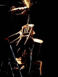 On retiendra deux de ces fils rouges ingénieux : les œufs et les chaises. Les œufs servent de matériau expérimental pour explorer la chute, son impact et – espoir ? – son dépassement. Les chaises, elles, semblent figurer des personnes (nous) – leur fragile équilibre reflète le nôtre. Le spectacle s’adresse à des adultes à partir de 14 ans, les adolescents y trouveront sans aucun doute matière à réflexion, en reflet de leurs propres interrogations. La forme du spectacle, violent, plein d’humour noir et de poésie, leur plaira sans doute et dans ce sens, le spectacle s’adresse très bien à son public. Au lendemain de cette représentation, Alice Laloy participa à la rencontre professionnelle organisée dans le cadre des Giboulées, durant laquelle différents intervenants expliquaient leurs processus de création. Nous ne retiendrons ici qu’une phrase de son intervention : “mon spectacle, à la fin, c’est une hypothèse”.