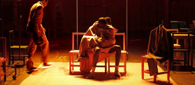 La scène est composée et délimitée par des chaises en bois colorés et des porte-manteaux montés sur roulettes qui font office de murs mobiles. Malgré le minimalisme du décor, on a effectivement l’impression d’être en Afrique du sud, dans la maison où se consume cette tragédie banale, et ce sûrement grâce à une utilisation très subtile des lumières et à l’atmosphère créée par les trois musiciens (qui entrent parfois dans le jeu): David Dupuis à la trompette, Raphaël Chambouvet au piano et Arthur Astier à la guitare. Sans oublier que le chant de Nonhjanhla Kheswa, la jeune comédienne qui interprète la femme infidèle apporte beaucoup à la pièce. Sans aucun doute, la nouvelle mise en scène de Peter Brook, Marie-Hélène Estienne et Franck Krawczyk, est une grande réussite.