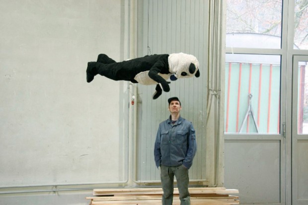 Visuels : 1 / Fischli and Weiss film 2009 / 2 / Rat and Bear, Mobile, 2009, iron, 850 cm / 420 cm / 3 / David Weiss (à gauche) avec Fischli / 4 / Le Cours des choses, 1986-1987 / / 5 / Rat and Bear costumes at the Yokohama. © Peter Fischli and David Weiss.