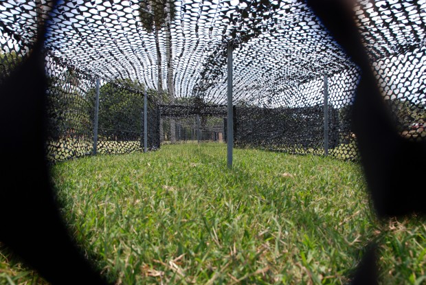 Enclos métallique, filet de camouflage noir. Longueur totale : 20 mètres. Lieu : ISA (Universidad de las Artes), Campus des arts. Courtesy Philippe Perrin. Copyright Philippe Perrin 2012.