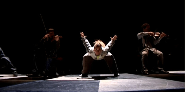 Ces même festivaliers auront pu assister cette année à une avalanche Merzouki. Trois spectacles ont été présentés, avec pour vecteur commun un tonnerre d’applaudissements à la fin. Boxe Boxe, chorégraphie créée en 2010 allie savamment danse contemporaine, hip hop et mouvements de boxe. La troupe de neuf danseurs atteint un niveau technique qui dépasse l’entendement et pendant une grosse heure tourne, virevolte et tape du poing sans jamais s’arrêter. De même, le quatuor Debussy qui accompagne live les danseurs joue à en perdre haleine. On applaudira Fabrice Bihan qui tient la note au violoncelle tout en marchant à reculons et dans le noir ! La musique a parfaitement sa place dans ce spectacle riche où tous les arts se mêlent harmonieusement.