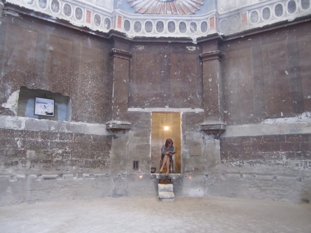 Visuels : 1/ Sophie Calle lisant en l’église des Célestins / 2 et 3/ vues de l’installation « Rachel, Monique » / photos Chiara Funari pour INFERNO / Copyright Sophie Calle et Festival d’Avignon 2012.