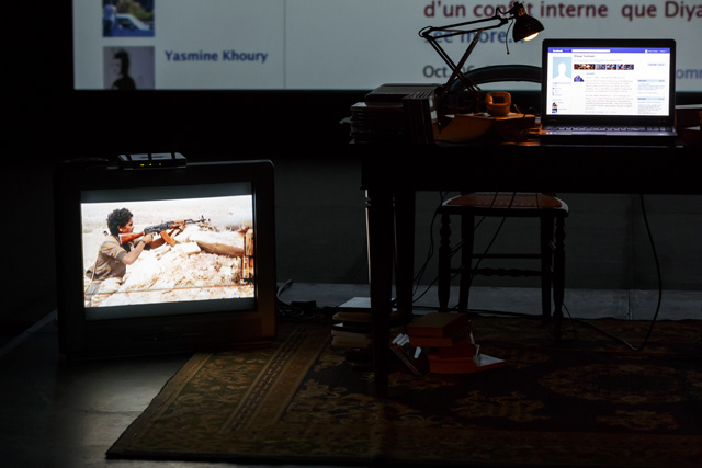 Les « posts » à l’humour un peu noirs, un peu décalés, -dont on regrettera parfois les traductions, pourquoi s’évertuer à tout franciser et négliger les sous-titres ? L’arabe libanais manque farouchement à l’oreille…- cristallisant nombre de visages du Liban finissent par agacer –très en longueur- parce que le théâtre de Rabih Mroué et de Lina Saneh se situe sur cette lisière ténue entre le théâtre et la vie, une performance qui surprend donc dès lors qu’elle n’est plus entre les murs d’un musée.
