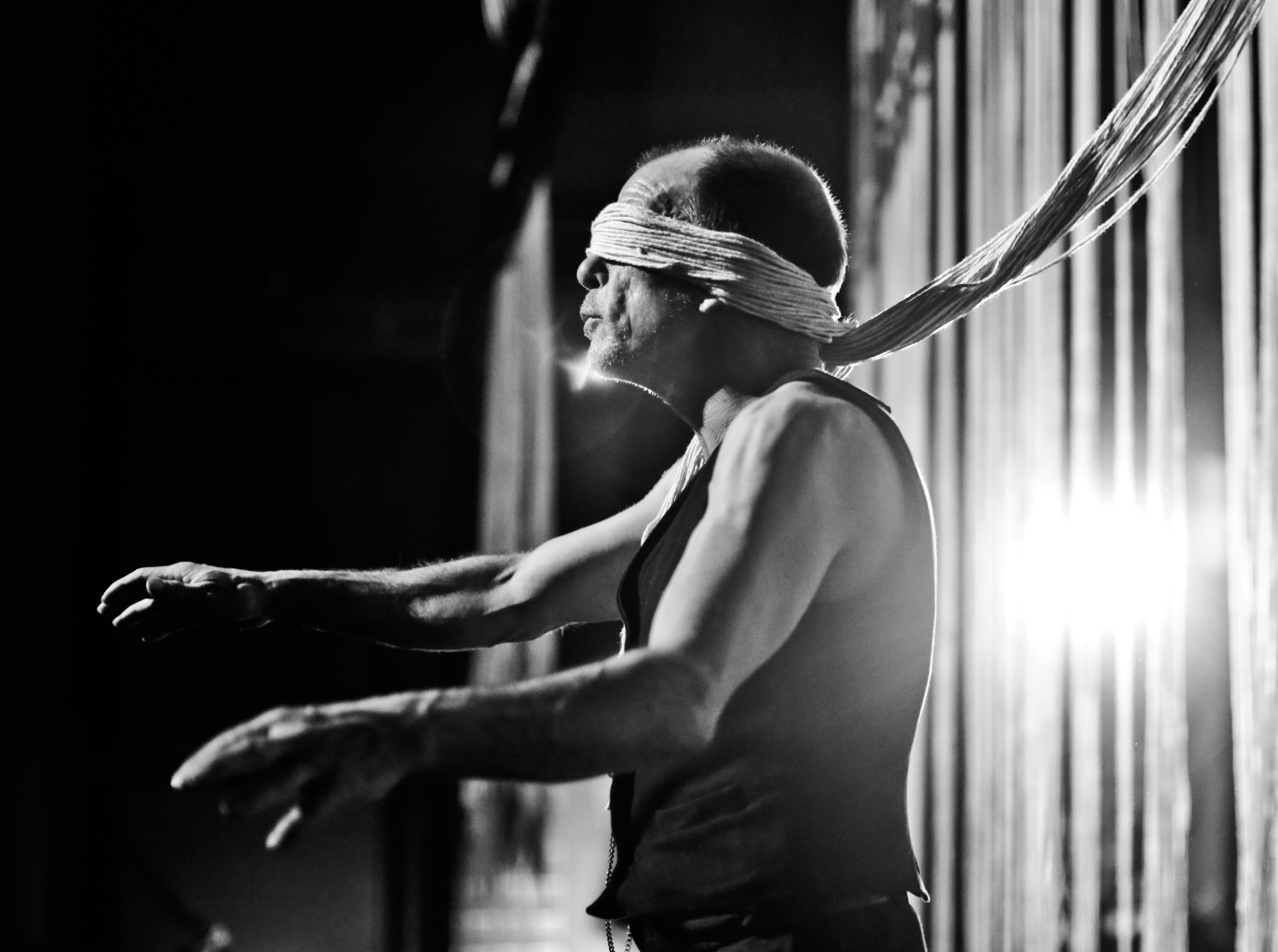 Si le premier tableau scénique est circassien, le deuxième se rapproche de la performance. Dans « Nocturne », Denis Lavant occupe cette fois centre du plateau, pour devenir l’homme – animal habité par un besoin de furtivité, de fugitivité, d’expressivité qui devient peu à peu violente, pris d’une transe traduisant tout son emprisonnement intérieur. La musique qui se joue tout près de lui lance comme des couteaux électriques. Tout le génie du comédien s’offre de la même façon dans le troisième et dernier monologue « Libération de Prométhée », mythe fondateur brutal revu par Müller, servi ici par la présence organique et les vibrations implosives de Denis Lavant.