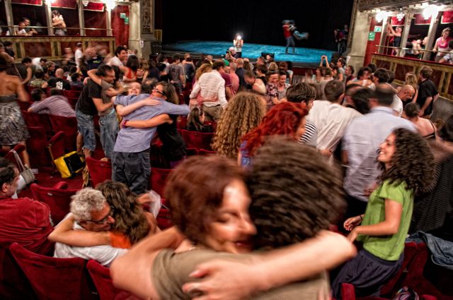 Les occupants ont donc pris le 14 Juin 2011 le chemin de la lutte, mettant en évidence l’état d’urgence pour ce qui concerne le système culturel italien, et ceci a ensuite pris caractère constitutif. Par l’expérimentation d’une autonomie pratique du théâtre et de l’organisation de manifestations culturelles, les artistes et travailleurs de la culture prouvent qu’une organisation autogérée du théâtre est préférable à la gabégie gouvernementale et l’absence de politiques claires en matière de culture de la part de pouvoirs publics omnubilés par la « crise » capitaliste.