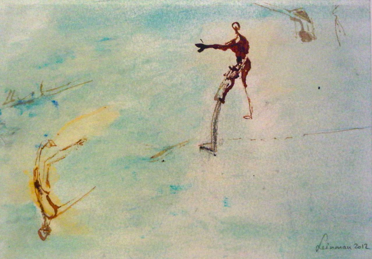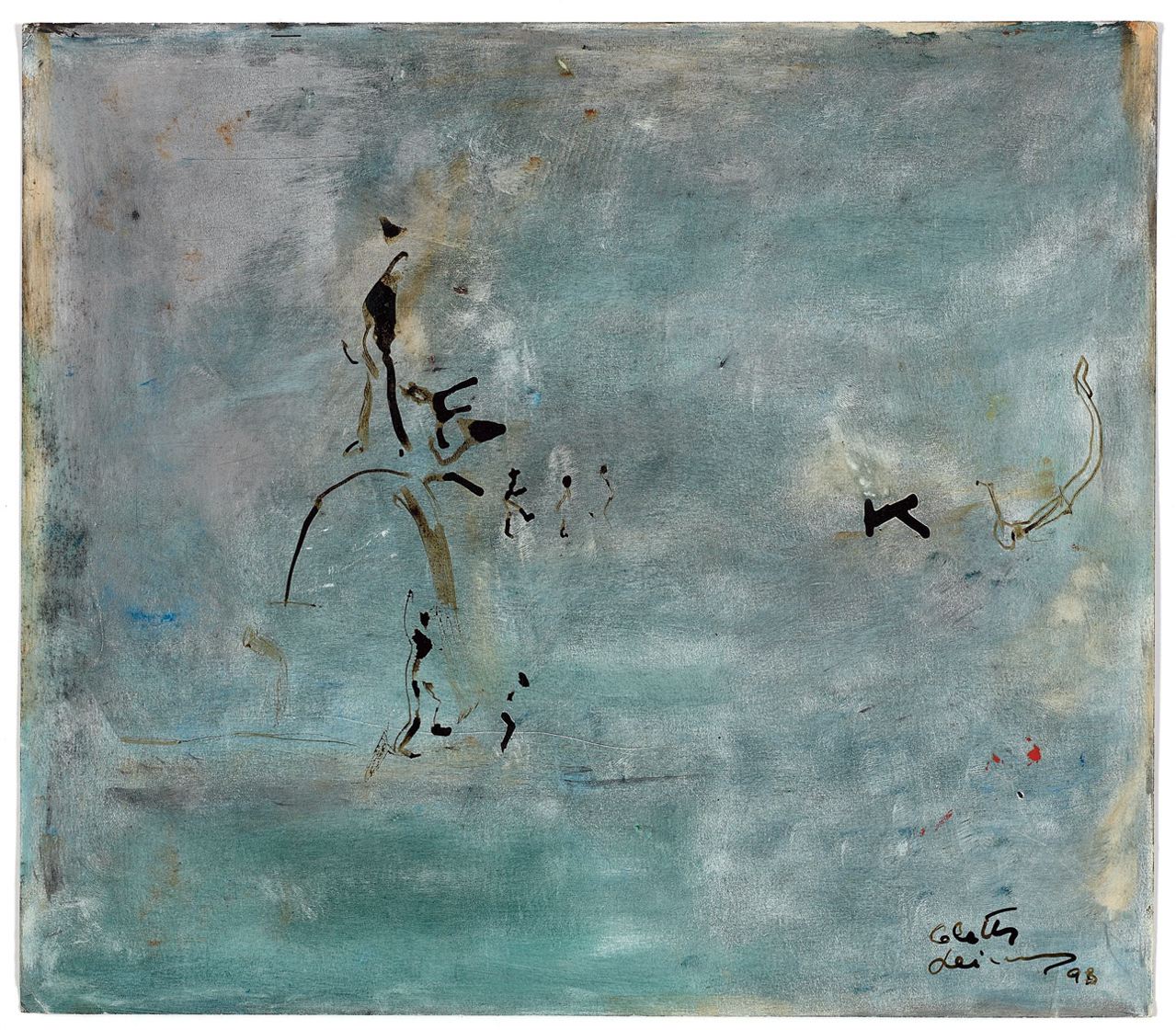 L’humain, toujours présent, peuple ses toiles sous la forme des n’Hommades, mais aussi sous la forme du recommencement, à savoir avec les grattages successifs. Ce creusement est de l’ordre du palimpseste et fait de l’oeuvre picturale de Leinman un travail s’apparentant à l’écriture :