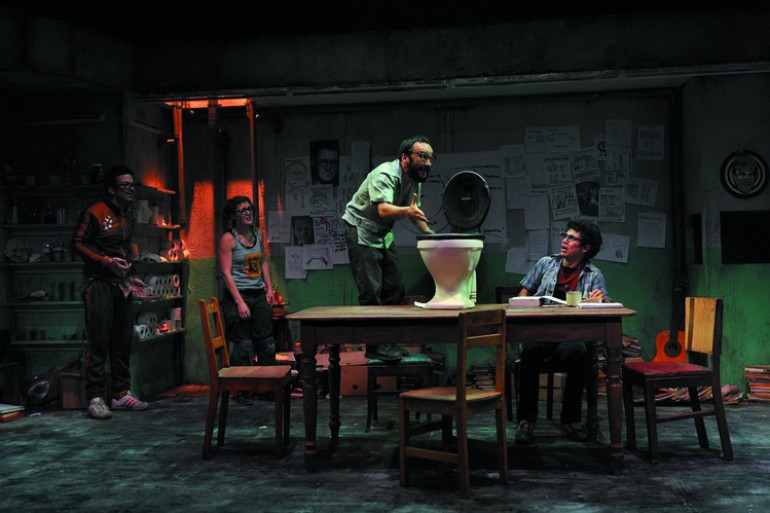 Dans « Tratando de hacer una obra que cambie el mundo » (En essayant de faire une oeuvre qui puisse changer le monde), un groupe d’acteurs décide de s’enterrer pour élaborer sous nos yeux » La pièce de théâtre » qui fera changer les structures sociales et sortir le spectateur de sa léthargie. Vaste programme. Et c’est vers le théâtre politique et engagé, qu’ils cherchent, dans une confusion intellectuelle et physique désopilante, citant à tour de bras les figures tutélaires de l’histoire théâtrale : Artaud, Nietzsche, Camus, Neruda… Les spectateurs jubilent !