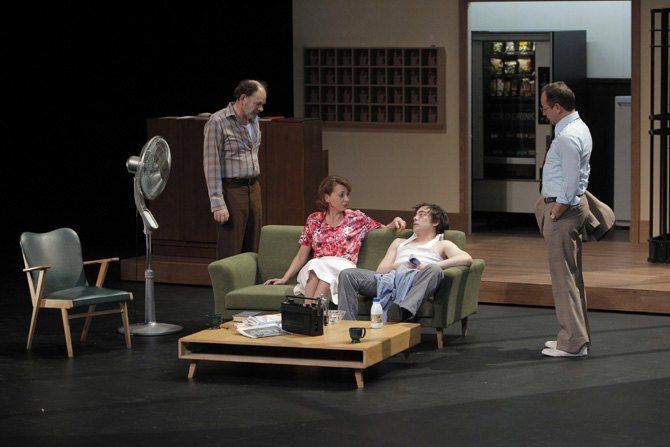 La situation est insoluble, et personne n’essaie de l’améliorer, mais la parole, elle, est cathartique et aucun ne s’en prive. Tout réside donc dans le dire, dans le fait d’exprimer sa souffrance, physique ou morale, de la balancer sans pincettes au visage des autres. Jean-Louis Martinelli donne à ce théâtre de la parole un cadre hyperréaliste. Sur son plateau, un hôtel, avec son comptoir, ses ascenseurs, son escalier, sa terrasse en bord de mer, son restaurant.