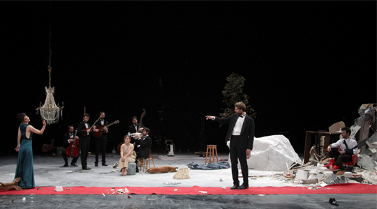 Des musiciens jazz, sous la direction de Florent Hubert, procèdent avec une liberté jouissive et inspirée à la réappropriation de l’œuvre de Purcell, ils infiltrent littéralement la partition, y insèrent des commentaires musicaux, contractent ou étirent certaines durées, changent d’accent ou basculent d’un rythme à l’autre. Leur méthode de travail est en parfaite adéquation avec une conception résolument ouverte de la direction d’acteur qui privilégie la création nourrie d’improvisations à partir de contraintes et de cadres formulés par les metteurs en scènes, gage essentiel d’une étonnante vivacité dans l’écoute, la complicité et la réactivité. Un véritable plaisir à se surprendre est à l’origine des situations les plus inattendues. L’exaltation d’être en scène devient communicative, entraine et emporte le public.