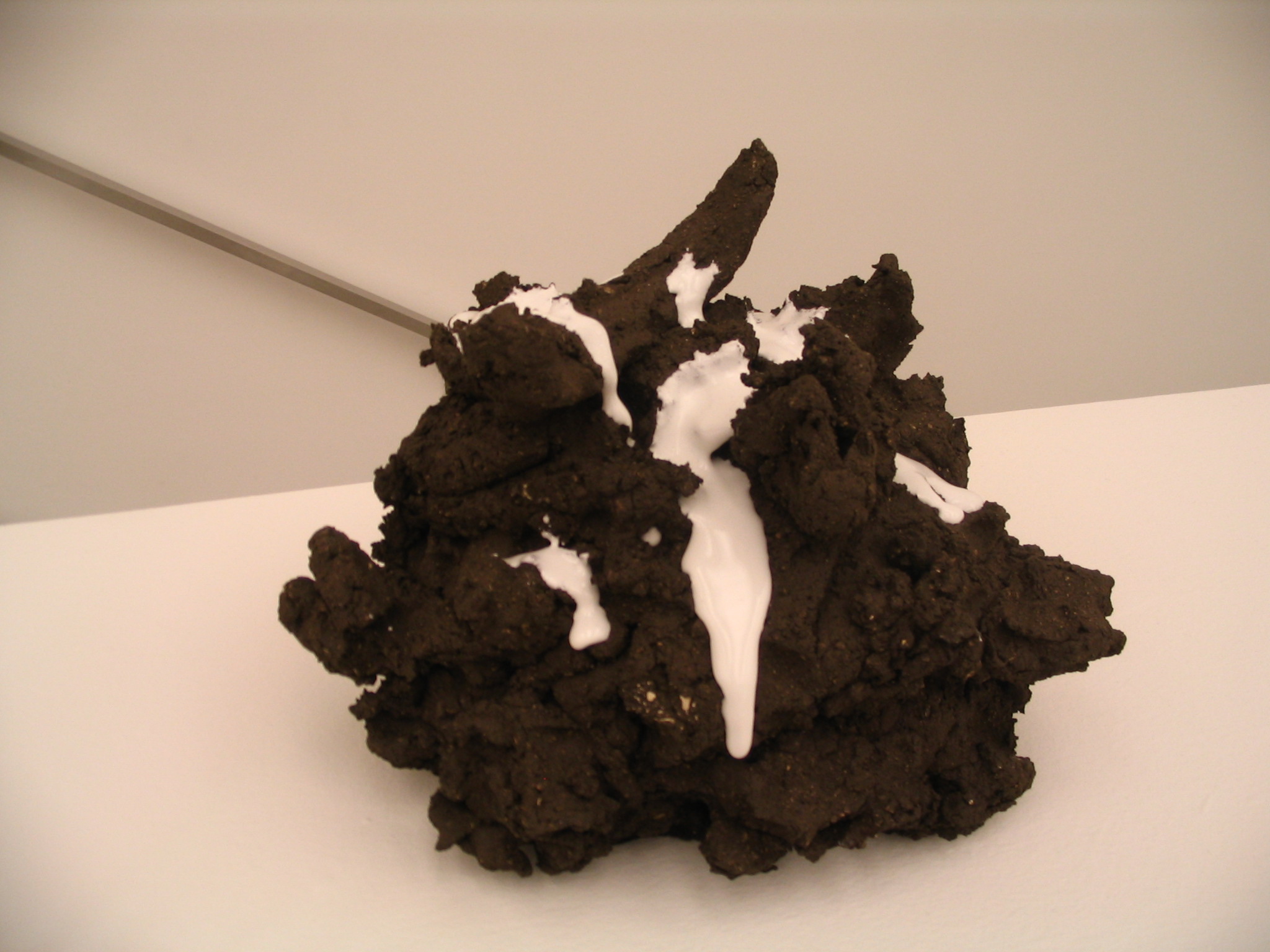 Excréments, tricotages, broderies, formes organiques évoquant des nourritures en putréfaction, corps mortifiés ou humiliés, morceaux d’anatomie, jusqu’aux formes totalement abstraites des dernières périodes, le travail de Trockel flotte souvent entre expressionnisme abstrait et dadaisme soft, toujours très impliqué symboliquement et féministe. Beaucoup de collages, de techniques mixtes, de photographies, de sculptures dans cette exposition qui présente la palette étonnante et sans limite de l’artiste, qui se frotte à tous les matériaux, tous les traitements, épuisant sans relâche les expériences et les formes.