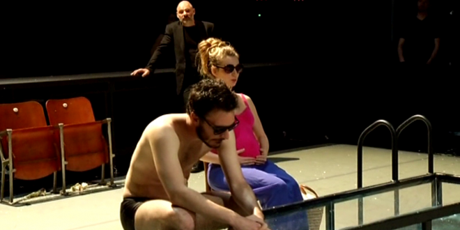 Ce n’est pourtant pas une cacophonie à laquelle, médusé, on assiste. Ce serait beaucoup plus juste de parler d’ « échophonie » tant les huit acteurs sur scène prêtent indistinctement leur voix à cette parole performative qui commente, sans jamais faiblir, les gestes et actes du quotidien qui agitent en tous sens les hommes et femmes, prisonniers du plateau. Ces personnages, d’une banalité sans âge, sont plus « agis » par les événements de leur vie qu’ils les déterminent eux-mêmes.