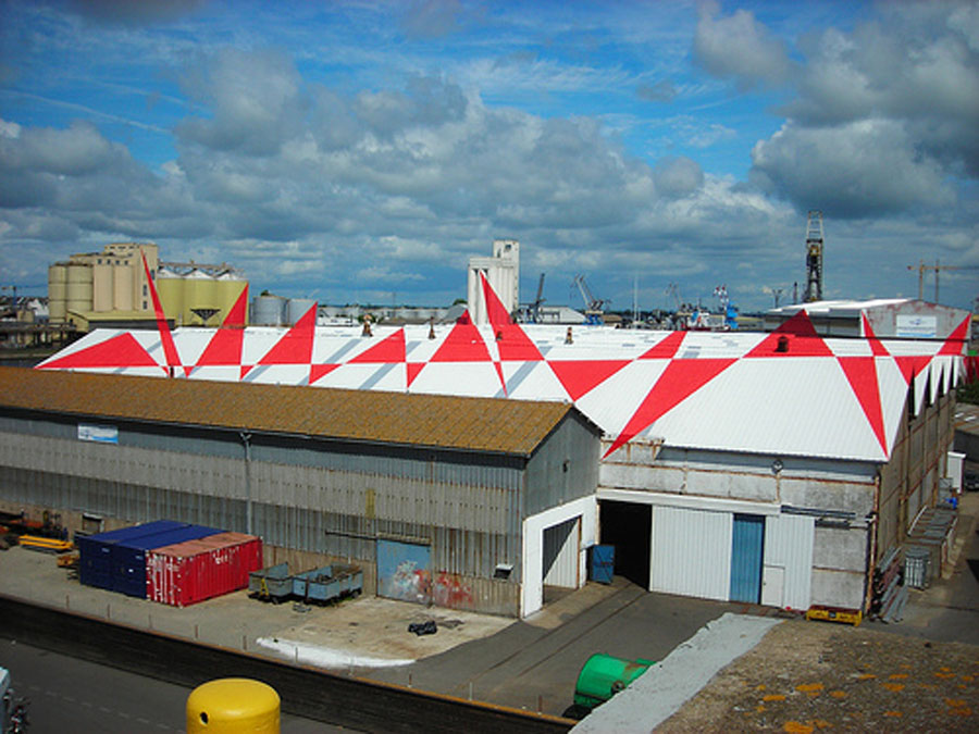 En 2006, Felice Varini découvre le port de Saint-Nazaire et ses perspectives cinématographiques de bassins et de bâtiments industriels. C’est dans ce fantastique terrain de jeu qu’il va réaliser la plus grande œuvre qu’il ait jamais faite jusque là. Il réussit à cette occasion un autre tour de force, symbolique celui là : il fait se retourner à 180 degrés le regard des visiteurs de cette terrasse panoramique qui jusque là ne se posait que sur le paysage – certes fascinant – de la rencontre de la Loire avec l’Atlantique ; le port, activité historique de Saint–Nazaire, était d’un coup révélé.