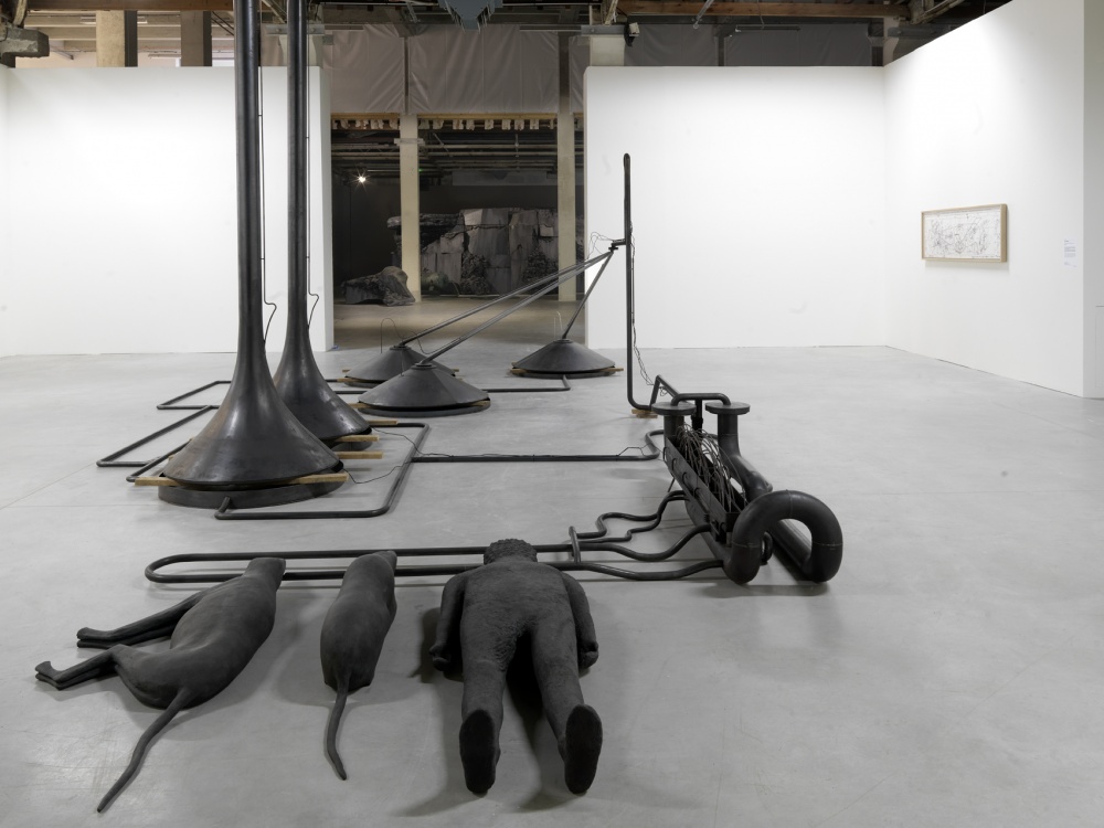 Au cœur de l’exposition, Mind Study, 2011, bronze, acier, bois, la pièce monumentale de Mark Manders, artiste qui représente les Pays Bas pour l’édition 2013 de la Biennale de Venise, distille subtilement, patiemment, des essences rares, en attendant la fulgurante réanimation des trois gisants. Sa terrible charge narrative et l’élégance mystérieuse de ses formes vernaculaires opèrent le travail secret de l’œuvre au noir, permettent la synthèse fantasque, improbable d’autant de matériaux épars : ainsi les trésors collectés, répertoriés dans le cabinet d’ethnographie de Mathieu Kleybe Abonnenc, jeune artiste qui s’intéresse aux points aveugles de l’histoire récente, aux luttes passées sous silence, les gestes filmiques de Joao Maria Gusmao et Pedro Paiva qui redécouvrent la magie du cinéma des origines, à mi-chemin des reportages des Frères Lumière et du théâtre illusionniste de Méliès ou encore les résultats elliptiques de l’enquête de Jean-Michel Othoniel en 1992 pour retrouver la villa Locus Solus dont une photographie figure dans les archives Roussel retrouvées en 1989.