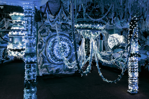 Heureusement, le pavillon flottant du Portugal, ancré devant la sortie principale des Giardini constitue une excellente surprise… Malins, les Portugais ont installé un bateau décoré d’azulejos sur les quais des Giardini, où ils accueillent Joana Vasconcelos, qui représente son pays de fort belle -et amusante- manière… Il faut monter sur le bateau, et en apprécier son installation dans les soutes.