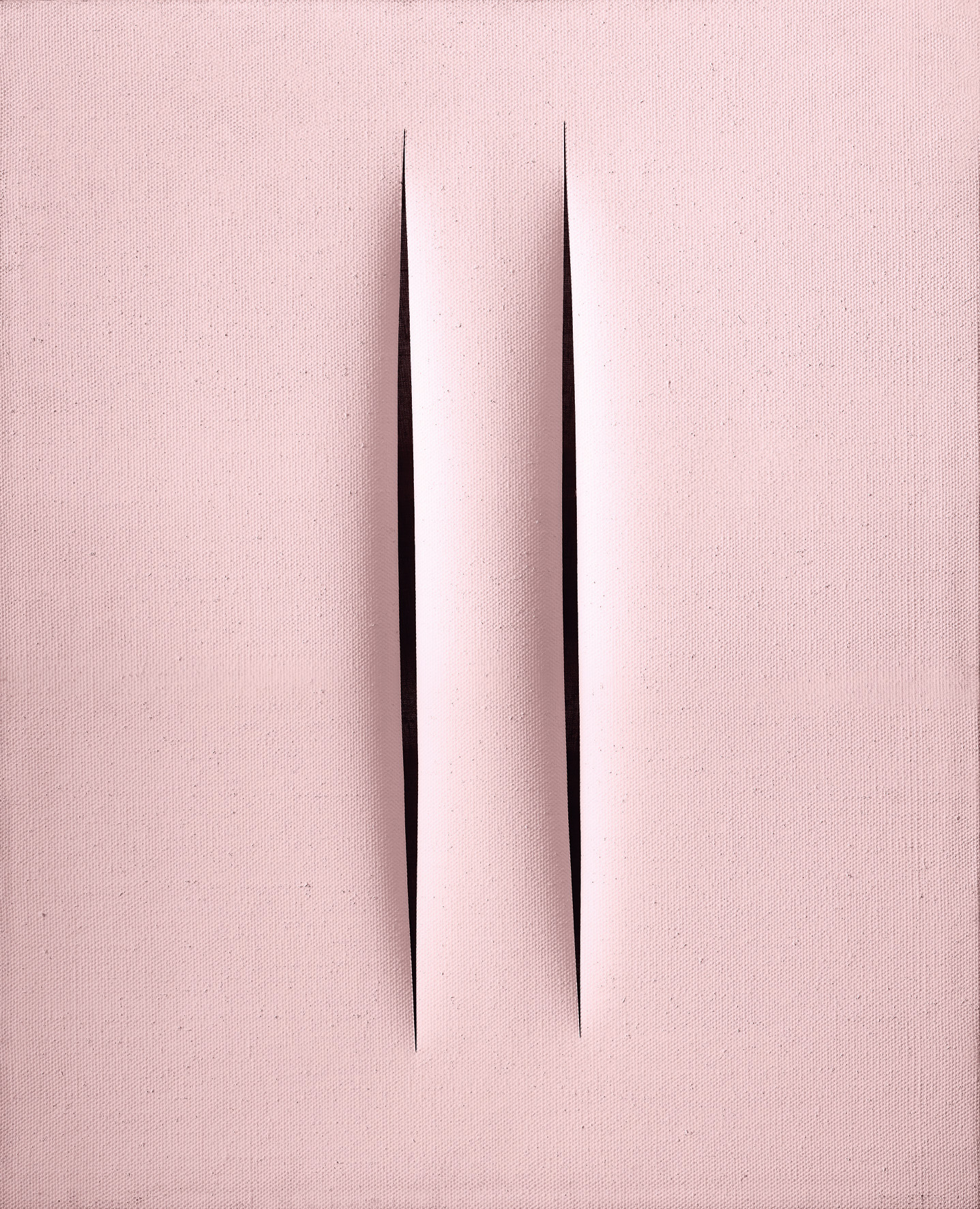 Visuel : Lucio Fontana. Le Spatialisme est aussi dans l’histoire de l’art, ici lucio fontana, son inventeur.