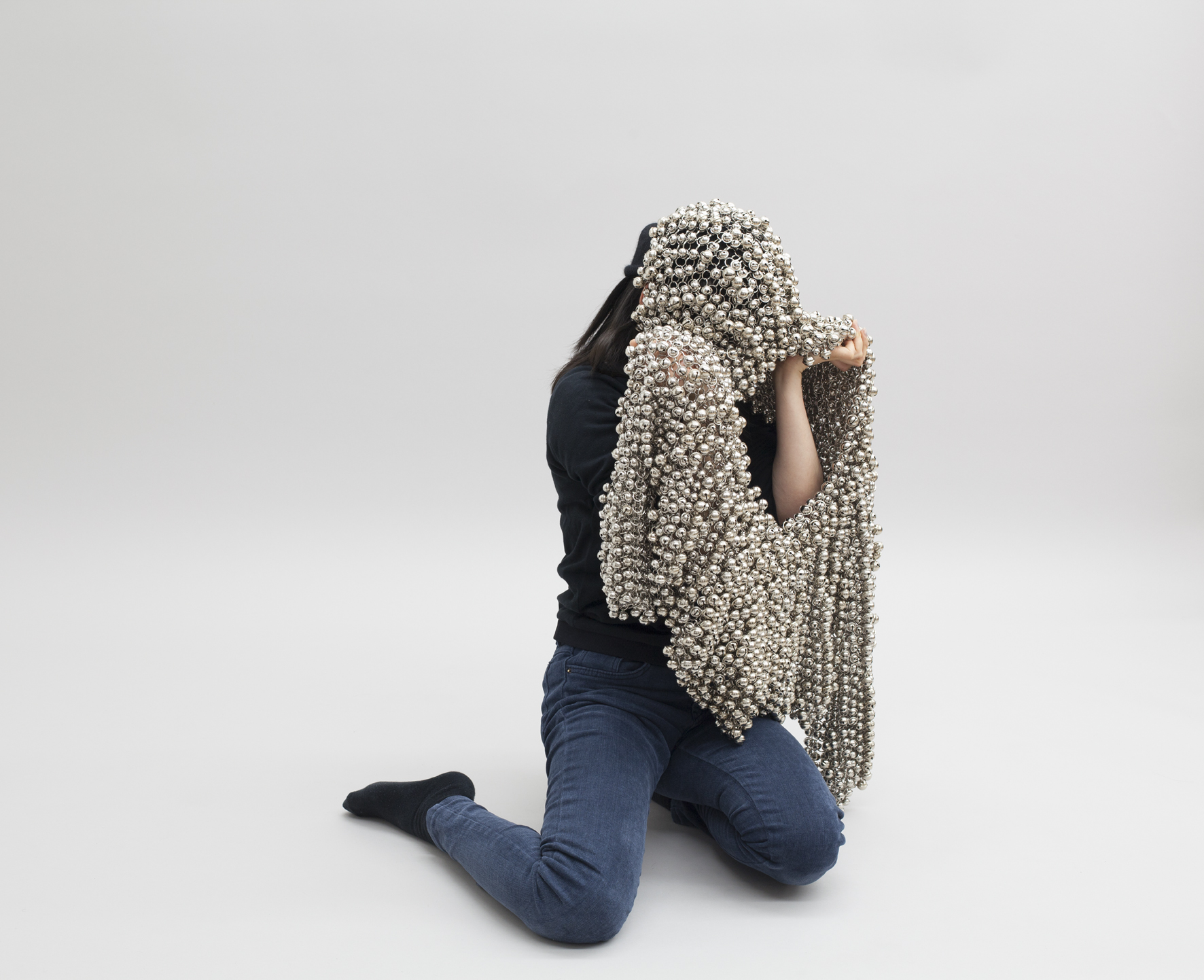 Dans la salle du ciné-dancing, se trouvent les Sonicwears, ensemble de costumes dorés et argentés constitués de clochettes. Ils sont à enfiler : le poncho argenté fait neuf kilos. Une fois porté, il est possible d’y ajouter des sortes de menottes ou des bracelets et d’alors faire tinter les clochettes qui nous recouvrent. Haegue Yang invite le visiteur à faire la musique qui, grâce à lui, va à nouveau résonner dans cet espace du ciné-dancing.