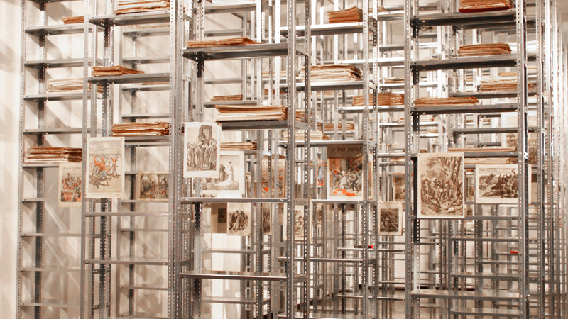L’installation de Kader Attia ainsi expose les mécanismes de la peur qui fonctionnent aujourd’hui, tout comme à l’époque coloniale. Comme à la Documenta 13 où l’artiste exposait son art « archéologique », presque méditatif, ses juxtapositions entraînent dans un labyrinthe obscur des systèmes de la peur.