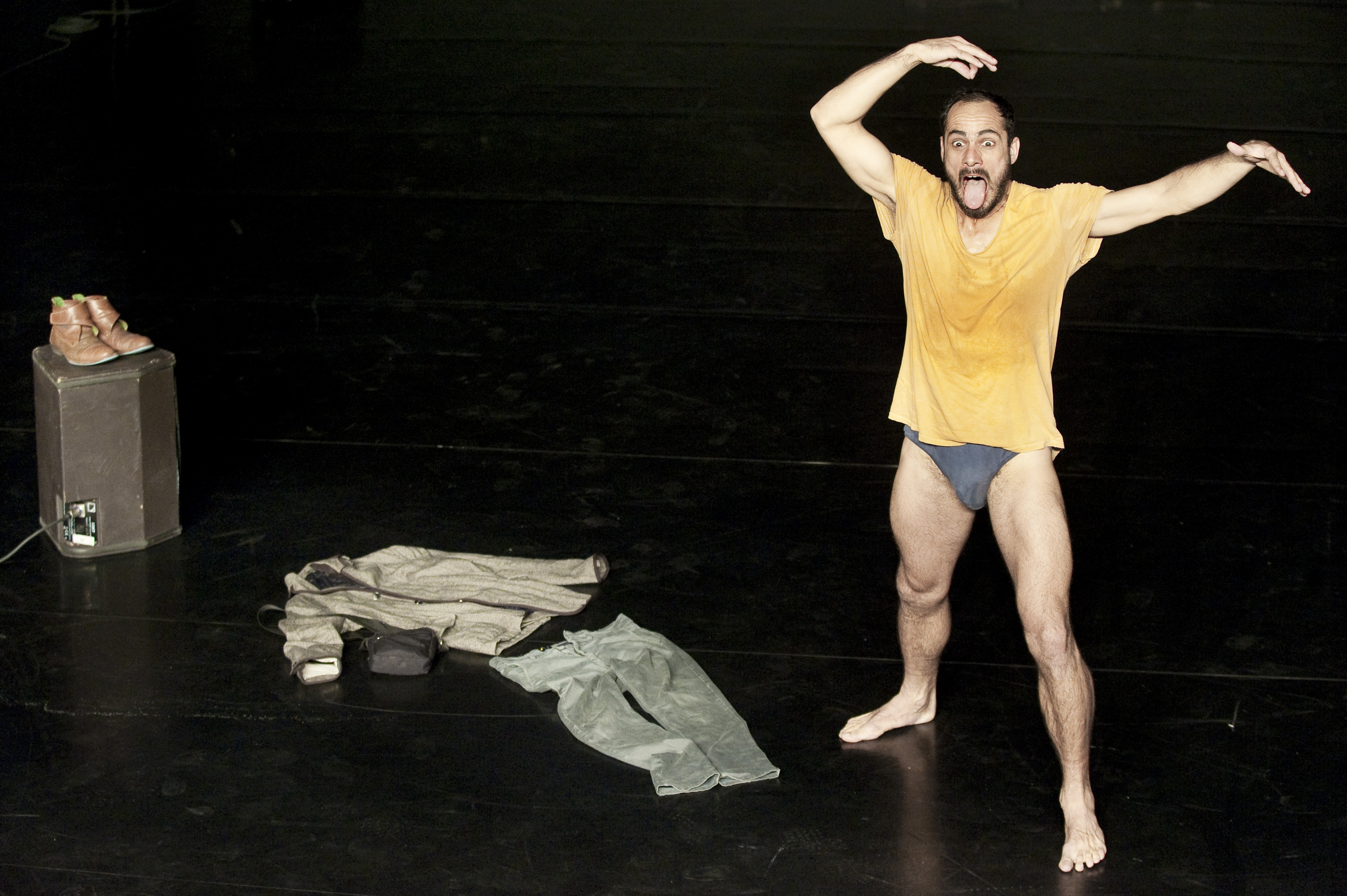 Dernier solo de cette série, Ce ConTexte de Yaïr Bareli est une expérience scénique déroutante qui interroge la mise en spectacle d’un corps, celui du performeur. Ce dernier débute la pièce dans les gradins. Il tente d’exploiter la patience et d’agacer l’écoute du spectateur. Il danse enfin avant de se mettre totalement à nu, comme si la danse que l’on a si longtemps attendue n’était que cela : un corps nu sur scène. Allongement du temps, ennui, impatience. Tels pourraient être les maîtres mots de cette performance opérée aussi bien par la personne sur scène que par le spectateur assis sur son siège. Une écriture qui laisse le champ au vide et à l’inconnu pour une provocation qui maintient un climat lourd et pesant. On en sort un peu triste avec l’impression d’avoir été trompé.