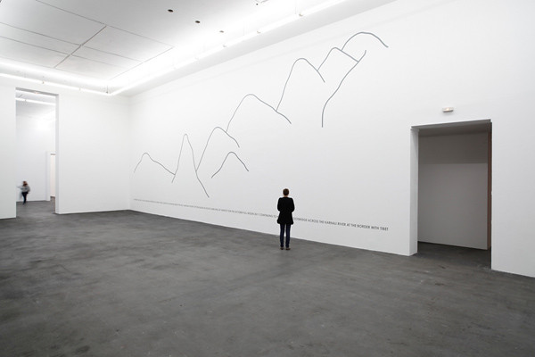 Pour lui, « marcher transforme ». L’expérience intime de ces centaines de marches et milliers de kilomètres parcourus est restituée à travers des photographies, wall paintings et sculptures. Ce passage de la sphère privée à la sphère publique fonde sa démarche. Cet artiste conceptuel fut également l’un des premiers avec ceux du Land Art à avoir imposé la photographie dite documentaire dans le champ de l’art contemporain dans les années 70. Ces pérégrinations (Tibet, Népal, Mont Blanc, Canada, Espagne, pour n’en citer que quelques-unes) fonctionnent en échos à d’autres et s’articulent autour de repères géographiques et de systèmes de mesures auxquels il se confronte. Il pénètre littéralement le paysage, démultipliant les points de vue par cette pratique physique qui engage le corps tout entier.