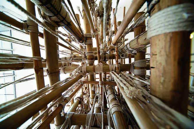 L’immense structure de bambous « Venu » est chargée de capteurs qui répondent au toucher, aux sons, à la lumière et aux vibrations. Le visiteur est invité non seulement à expérimenter l’œuvre mais aussi à en être l’acteur, le déclencheur.
