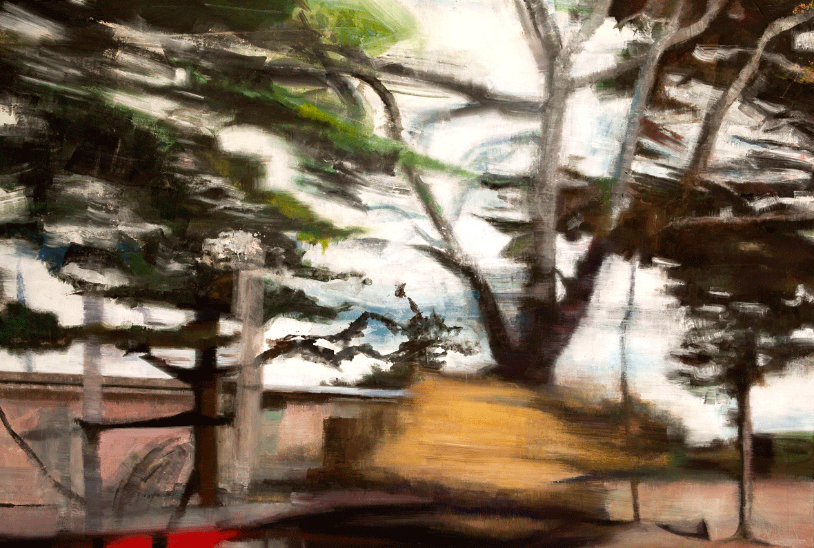 À travers un ensemble de travaux (les Magnolias, Portes – Tehilim, Od drwzi do drzwi, Yemima, Makom ou l’installation Migration temporaire), l’artiste poursuit sa réflexion en troublant la représentation du réel pour mieux lui rendre sa visibilité. Dans la série des Od drzwi do drzwi (de porte en porte), Carole Benzaken déstabilise la perception du spectateur par des effets de flux, d’accélération qui altèrent l’image source, (road movie d’arbres en hiver) : cette dilatation de l’espace et du temps est transposée par une touche picturale qui fait vibrer voire trembler la représentation. Le flou de l’image rend le sujet immatériel, distordu et imprécis. L’effet optique de ce long déplacement produit sur le spectateur un sentiment de fugacité et d’éblouissement.
