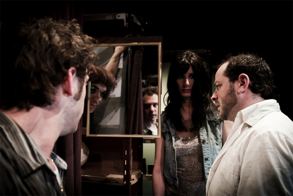 Ils sont perdus, les deux vieux travlos de Sergio Boris. Perdus dans leurs vie, dans leurs amours, dans leurs lieux de tapinage… La scène se passe entre les étalages d’une vieille pharmacie miteuse qu’Evaristo et Daniel, en manque de re-père, viennent de reprendre. L’un a mis treize ans à obtenir sa licence, l’autre pille les stocks et fait du deal à la petite semaine. S’accoquine à ce quatuor de prostitués et de pharmaciens, un représentant médical inutile et hâbleur.