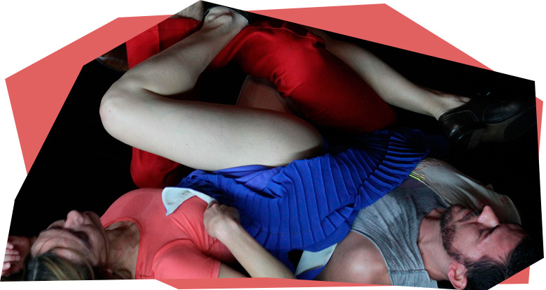 On pourra regretter que la chorégraphe n’aille pas plus loin dans l’exploration de l’informe qui menace de prendre le contrôle du plateau. Elle semble effectivement plus intéressée par les traits appuyés de son roi et reine qui puisent leur matériau gestuel du côté du cinéma burlesque des origines. Leurs prestations sont ajustées en direct par les injonctions sèches d’une voix off qui ne mâche pas ses ordres. Hélène Iratchet met ainsi en scène les relations brutales entre un pouvoir omnipotent qui agit dans l’ombre, mais n’hésite pas à faire sentir son incontestable emprise, et ses représentants « officiels » relégués au rôle de simples pantins désarticulés, figures tragi-comiques d’un jeu de cartes dépareillé. La référence au monde du théâtre et de la danse est explicite dans des épisodes cocasses où l’on s’essaie à la fatigue ou à l’amour et la sensualité. La chorégraphe traque et cherche à débusquer les espaces de liberté que les interprètes réussissent néanmoins à se ménager, les pas de côté et les interstices d’où surgit parfois toute la force d’une création.