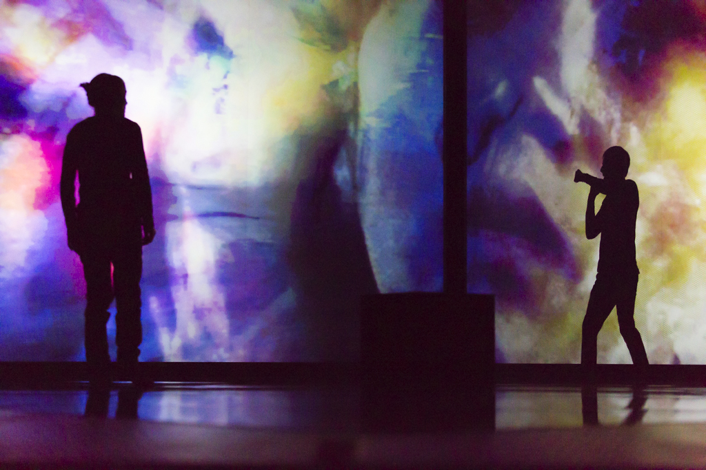 Sur scène, on est face aux deux parois d’un cube, deux écrans qui montrent les visages à la fois réels et irréels des personnages dont il va être question. Devant ces écrans, un petit cube noir est posé au sol. Deux acteurs, un homme et une femme, Stéphane Facco et Agathe Molière s’alternent sur scène et donnent voix et corps aux personnages, éparpillés entre l’Afrique et la Chine, dont ils nous relatent l’existence.