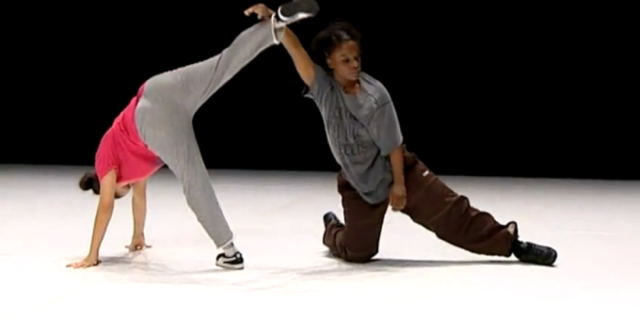 Comment la danse contemporaine regarde ici le hip-hop. Si je fais référence plus haut au concept de déconstruction, c’est bien en référence à la pensée de Derrida, et point pour faire savante, mais bien pour dire que l’expérimentation formelle à partir du vocabulaire kinesthésique du hip-hop, permet de voir, d’entendre, ce qui, dans une forme où le hip-hop est comme prélevé dans la rue et placé sur scène dans un cadre spectaculaire plus ou moins fort, reste invisible.