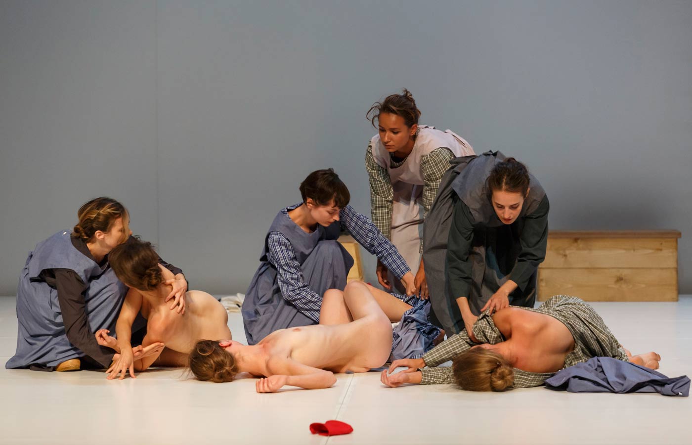 Qu’en est-il alors de se sentir ainsi, démuni par le flot d’émotions incontrôlables qui monte doucement et jaillit de manière surprenante et invraisemblable ; parce que, probablement, on ne sait pas tout à fait pourquoi, sans doute qu’une tranche de (notre) vie nous ait apparu sur scène, que l’énergie d’un des acteurs nous touche au plus profond, sans raison apparente ? Et de pleurer d’un désespoir inconnu, ou rire aux éclats, avec joie et rage. De se sentir encore plus démuni car l’on rit ou pleure à côté d’un inconnu.