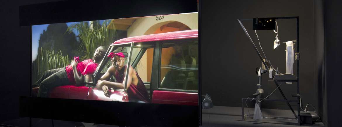 Dans le projet de l’artiste pour la Fondation d’entreprise Ricard, les éléments mis en relation par l’installation (les « salles de projection » si frustrantes de Beloufa, avec leur structure en labyrinthe, ou encore ses making-of sculpturaux, dérangeants par leur réalité palpable) voient leur syntaxe et leur fonction retournées. Jamais en phase avec leur statut d’accessoires, ces objets seront activés et documentés, déplacés et « animés » ; il leur sera permis de se développer au delà des distinctions admises de figure, de fond et d’importance. Leur usurpation d’une position centrale sur scène intensifie et souligne leur place ambiguë entre fonctionnalité et obstruction. L’interface incarne le rôle du protagoniste, qu’elle s’est d’abord appropriée. Nous avons là l’inverse d’une situation à la Pygmalion, d’une statue prenant vie, dans un écho aux anxiétés modernes autour d’un complot des écrans qui envahiraient peu à peu les corps et les âmes des spectateurs. Neïl Beloufa se livre aussi à des expériences d’animation avec cette vibration hypertrophiée d’images, projetées ou montrées, où le cadre ne se distingue plus de ce qui est cadré.