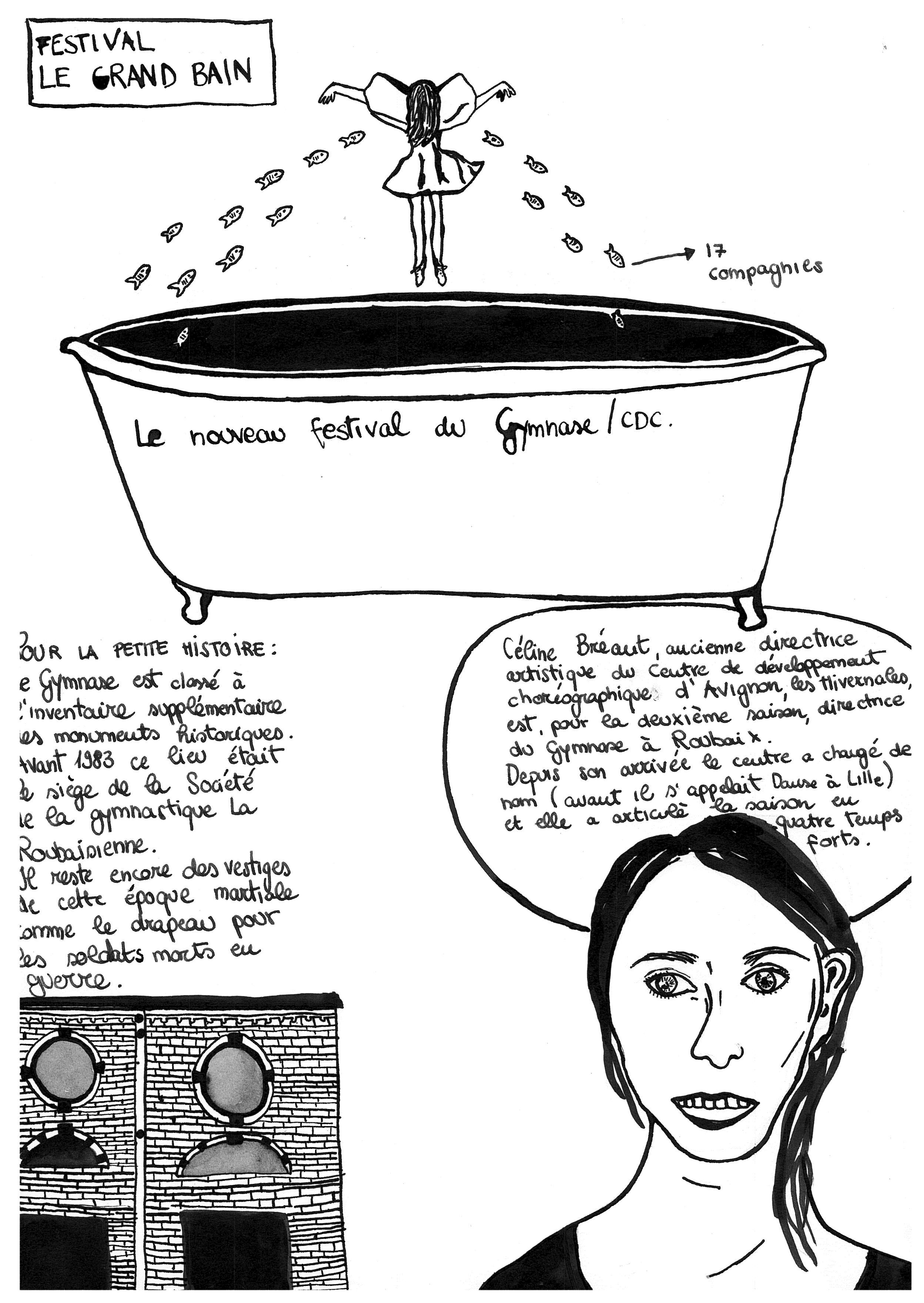 LA CHRONIQUE DESSINEE de Camilla Pizzichillo : Festival « Le grand bain » à Roubaix CDC Le Gymnase, Roubaix. (du 5 au 12 avril).