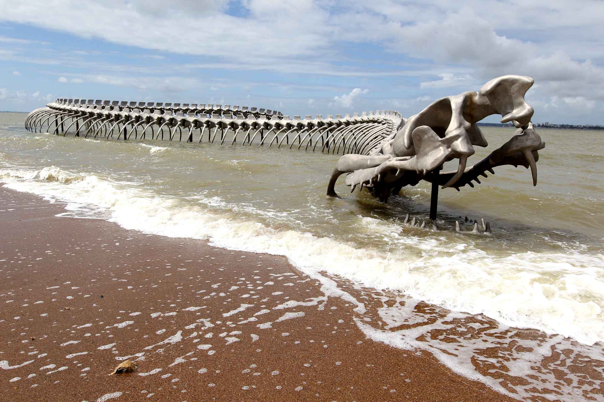 Parmi les multiples stations du parcours, l’artiste Huang Yong Ping expose au Hangar à Bananes « Les Mues », dont une oeuvre en forme de gigantesque mue de serpent est la suite de celle installée dans l’océan en 2013, un immense serpent métallique.
