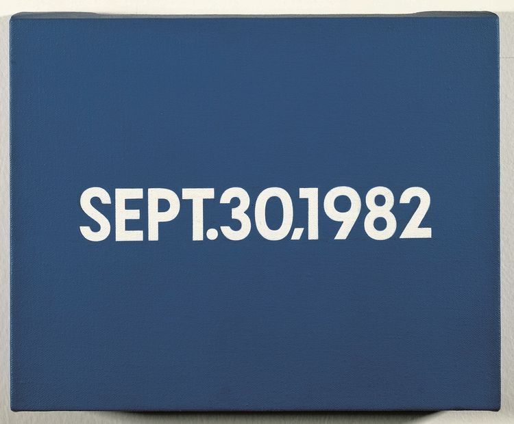 On Kawara, né en 1932 à Kariya au Japon, vivait et travaillait à New York depuis cinquante ans. Figure incontournable de l’art conceptuel, c’est le 4 janvier 1966 qu’il entame sa fameuse série des Date Paintings. Les Date Paintings sont des tableaux qui reproduisent la date de leur réalisation – dont la durée ne peut excéder celle de la journée – en s’appliquant à ne varier que le format et la couleur de leur support monochrome, ainsi que le libellé de l’inscription qui obéit aux conventions du pays où l’artiste se trouve au moment où il peint. Ce travail est prolongé par les télégrammes qu’il fait parvenir à des interlocuteurs de la scène artistique avec la mention « I am still alive » et l’heure exacte, les cartes postales où figure « I got up at… », ou encore les immenses livres de la série One Million Years, où sont énumérées à la machine à écrire toutes les années composant un million d’années.