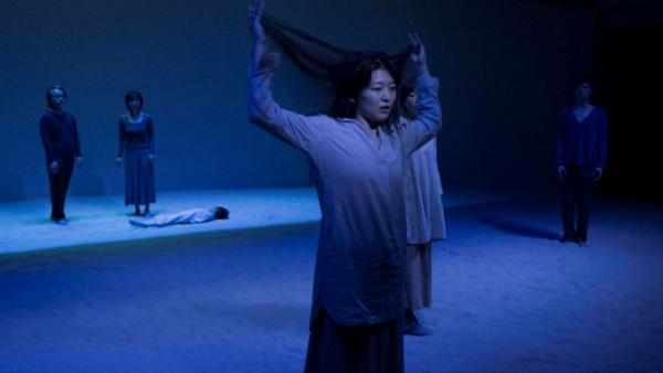 De même que la proposition de Satoshi Miyagi, directeur du Shizuoka Performing Art Center de Tokyo (par ailleurs présent à Avignon avec son « Mahâbhârata » à la Carrière de Boulbon), soit venue percuter l’inconscient du metteur en scène, trente années après qu’il eut monté une première adaptation de la pièce, comme si le temps n’était pas « passé », est tout sauf fortuit. Ce choix de comédiens japonais, incarnant les codes du nô dans lequel la mort est d’emblée omniprésente sous la forme du pont (venant de l’autre monde) que les acteurs traversent pour entrer en scène, trouve un écho « Intérieur », la réflexion sur la mort tonitruant, non seulement dans cette pièce, mais plus largement dans l’ensemble de l’œuvre de Claude Régy.