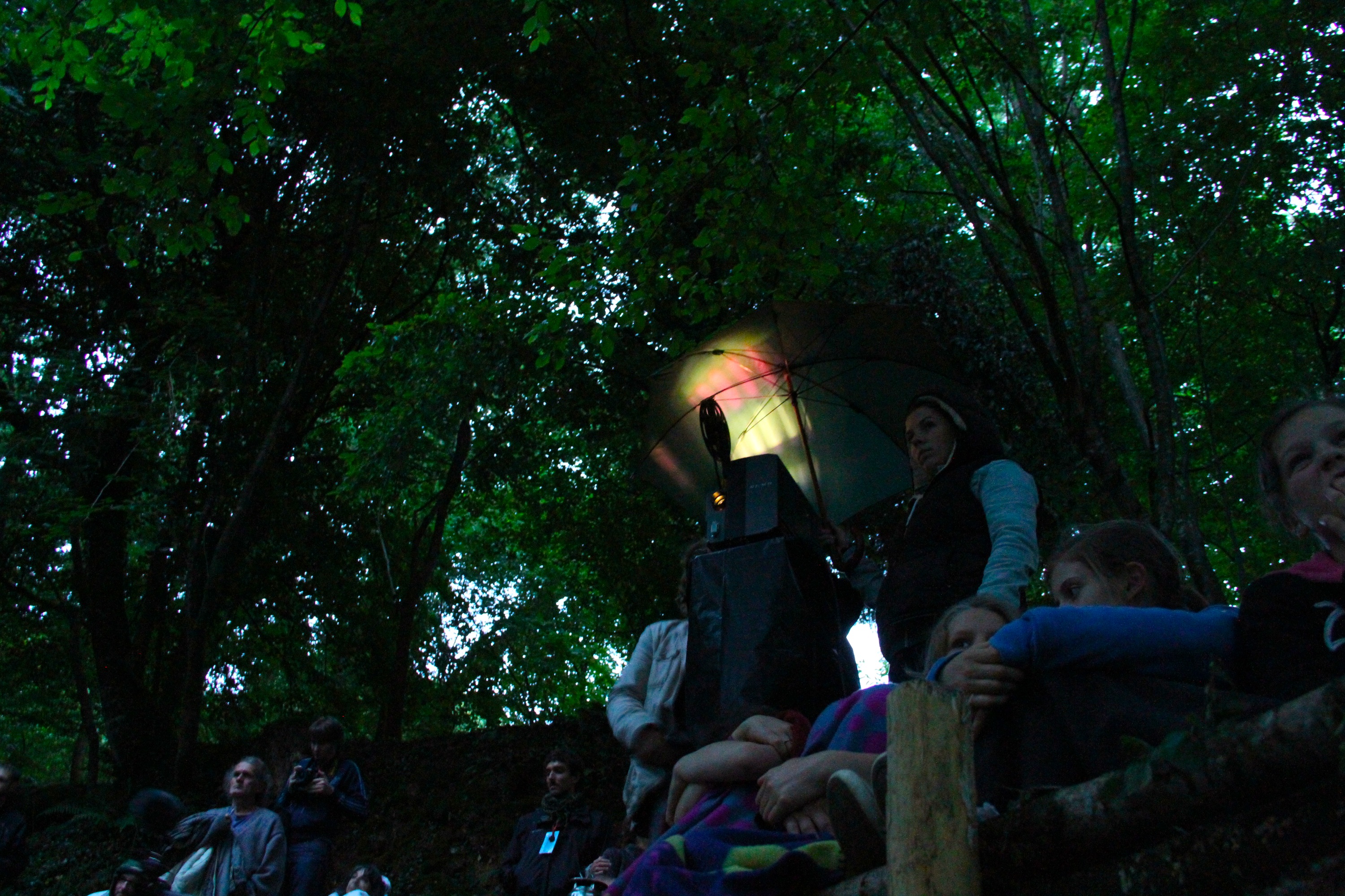 Si le jeu exubérant des lignes (notamment dans les films de Len Lye) et les pulsations des éclats d’acide confèrent une teneur à dominante abstraite à ce premier programme présenté dans le cinéma Le Chateaubriand à Combourg, le lendemain, à la tombée de la nuit, au cœur des bois, une seconde programmation fait pleinement entendre les incantations d’images à forte résonance organique. A l’heure secrète, entre chien et loup, où les ombres s’allongent subrepticement avant de tout engloutir, des silhouettes laiteuses, fragiles, dansantes se détachent de manière furtive du grain du super 8. L’obscurité est déjà enveloppante quand, au rythme d’un projecteur 16mm cette fois-ci (véritable prouesse technique au milieu de la forêt), des nervures, fibres, ailes transparentes et autres pétales en expansion, nous entrainent vers des devenirs insoupçonnables, moléculaires, doux et sauvages à la fois, dans la profondeur de l’image des œuvres de Stan Brakhage ou encore de Peter Rose. Caresser, frissonner, respirer, incorporer au delà des surfaces rétiniennes, jusqu’au plus profond de soi, les rythmes de la matière, c’est une promesse que ce programme nocturne tient pleinement.