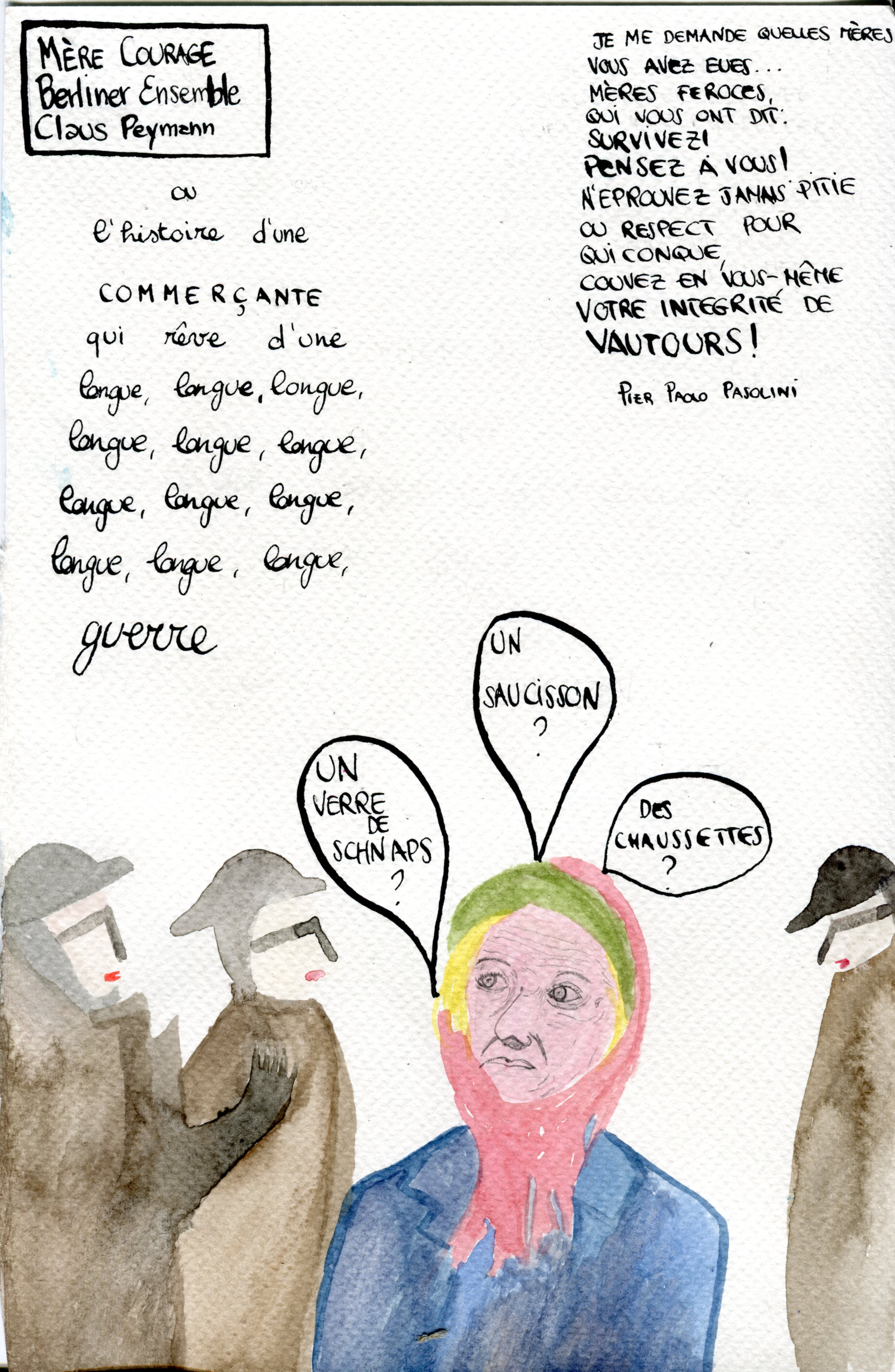 LA CHRONIQUE DESSINEE de Camilla Pizzichillo : « Mère Courage » de Bertolt Brecht, par le Berliner Ensemble, mise en scène de Claus Peymann jouée du 17 au 26 septembre 2014 au Théâtre de la ville.