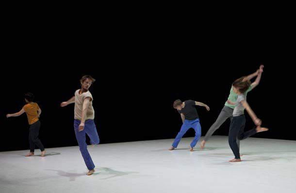 Beaucoup de la chorégraphie -peut-être même la totalité- repose sur la personnalité du danseur, son énergie propre et sa capacité à trouver le bon rythme entre son parcours, celui des autres et la musique. La rythmique du spectacle se forge aussi dans l’alternance de présence et de présence/absence du danseur. Ceux-ci étant tout le temps sur scène, en fonction des jeux de domination des uns des autres, ils ont la charge de s’effacer de la diégèse sans pour autant s’effacer du plateau ; le plus dur étant de revenir au centre sans force ou fracas.