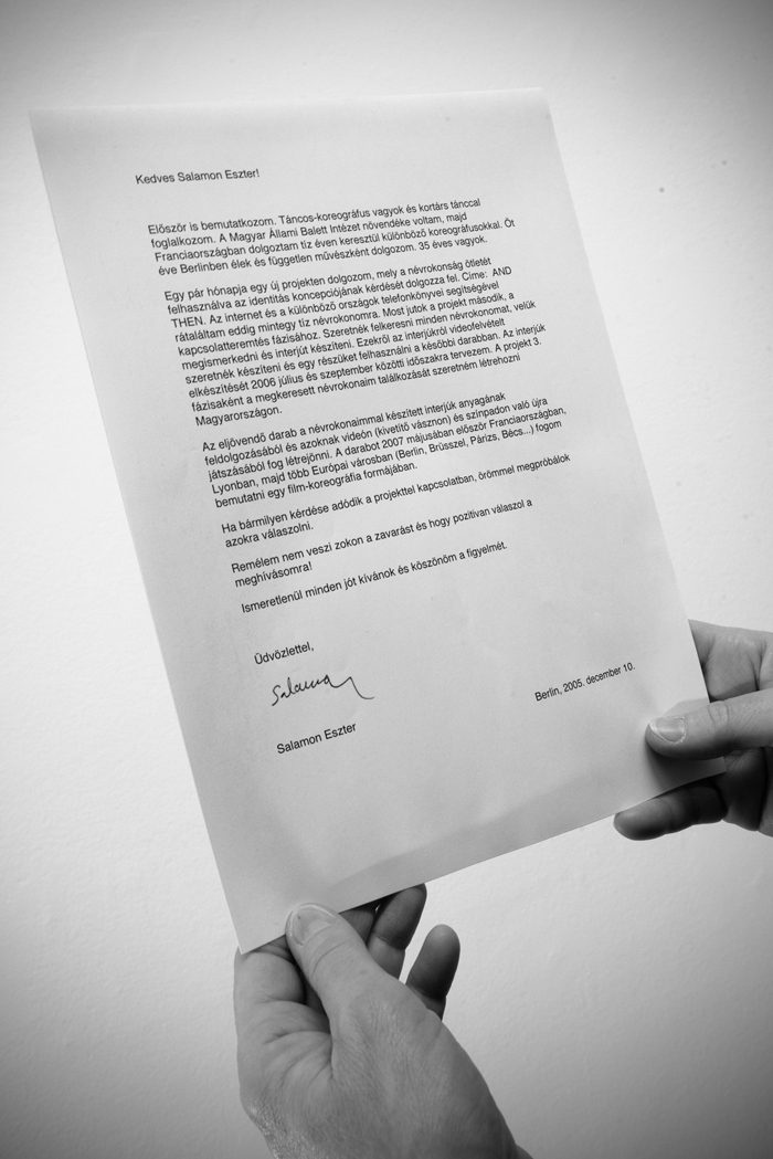 Pour le solo Mélodrame, elle avait ainsi mené une série d’entretiens avec une de ses homonymes rencontrée en Hongrie. Avec « Eszter Salamon 1949 », elle en propose une déclinaison élargie, investissant cette fois l’espace et le temps spécifique du lieu d’exposition. Pendant quatre semaines, six heures par jour, le Jeu de Paume résonnera de voix et d’échos de cette vie diffractée, amplifiée, mise en abyme. Rejouant les mots échangés entre une Eszter Salamon et une autre, les actrices Véronique Alain, Désirée Olmi et Frédérique Pierson, incarneront ces bribes subjectives, où le hasard d’un nom rencontre des événements historiques et des anecdotes.